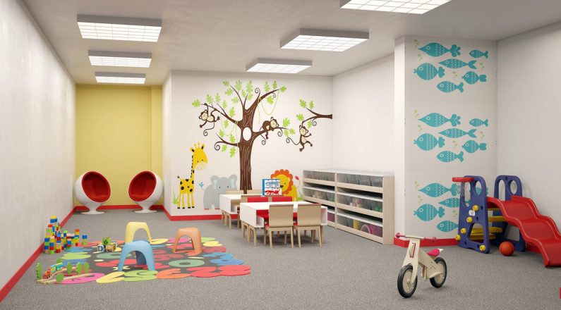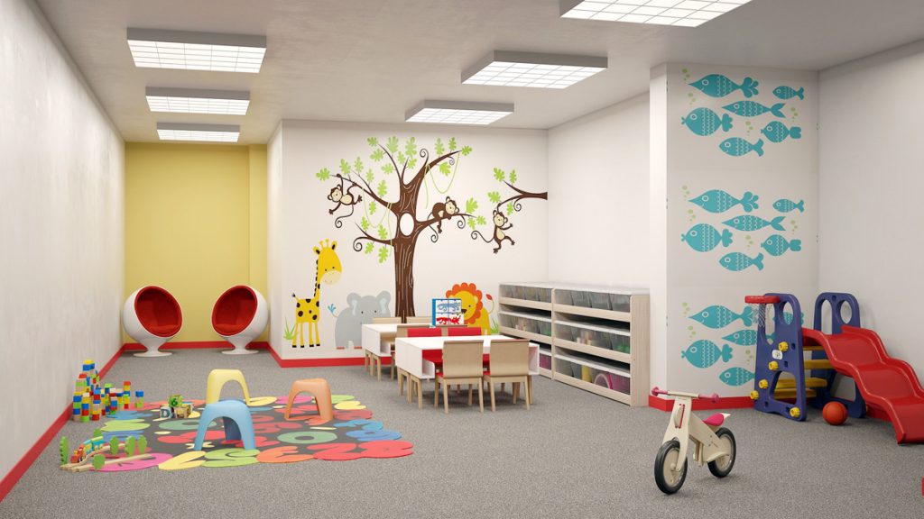 - Çocuklar için bahçe manzaralı oyun alanı.