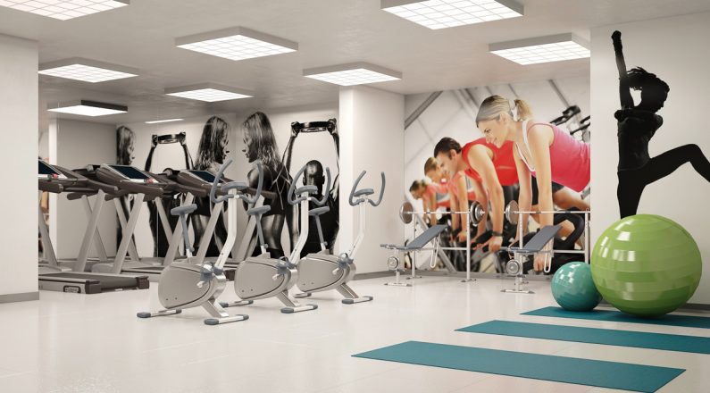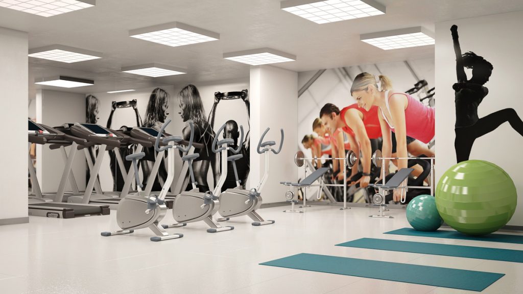 - Bahçe manzaralı kapalı fitness salonu.