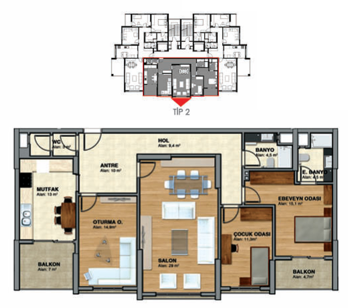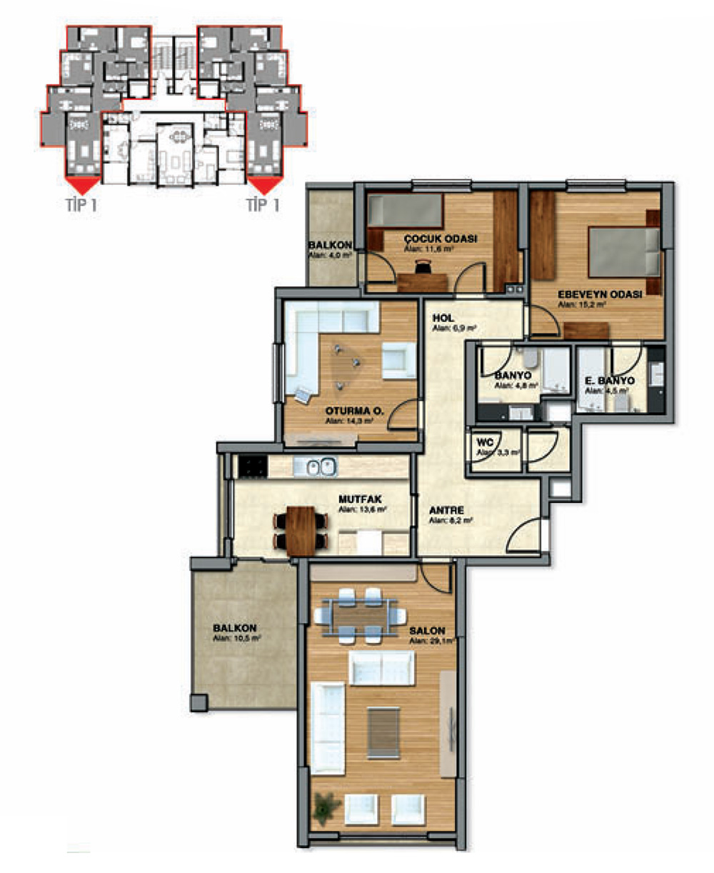 | İçerik: | 45 adet 3+1 daireler |